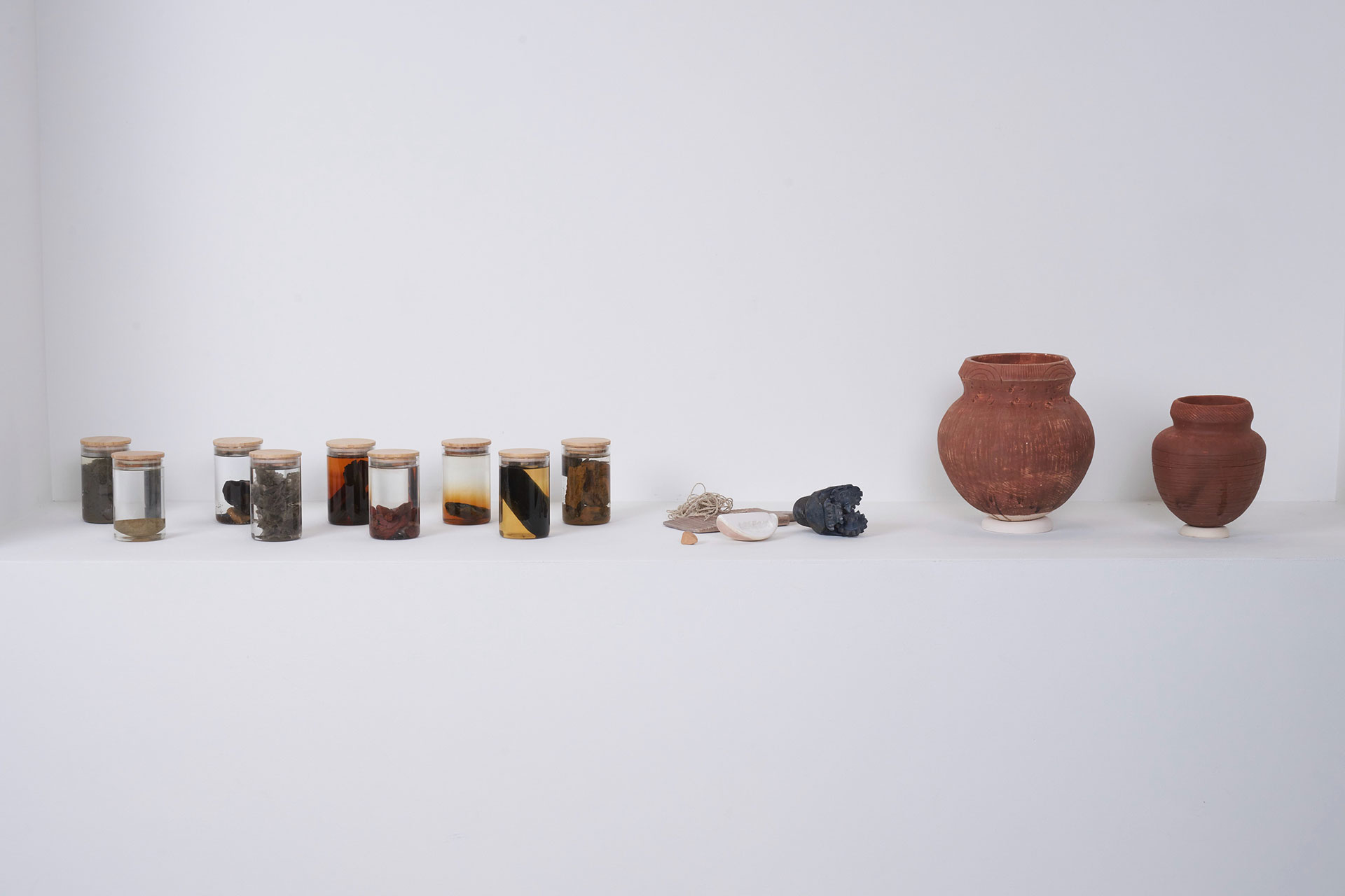 米国ノースダコタ州のスタンディング・ロック保留地で生まれたチャヌーパ・ハンスカ・ルガーは、フォート・バースフォールド保留地の三大連携部族(マンダン族、ヒダーツァ族、アリカラ族)およびラコタ族の一員として、21世紀を生きる先住民が直面する切迫した状況を表現してきました。陶磁器や鉄、テキスタイル、映像、再利用素材など、さまざまな材料を組み合わせて作られた作品には、こうした状況に対するルガーの鋭い批評と、素材・土地・共同体への深い敬意が込められています。 本作は、2022年の個展「A WAY HOME」に新作を交えて再構成したものです。ミズーリ川流域の地形にまつわる映像と詩は、大地の雄大さを讃え、土に対する敬意を感じさせます。陶による〈グランドマザー・シリーズ〉は、主にマンダン族の祖先たちが「たたき技法」で作ってきたうつわを彼自身の手で再現したものです。伝統的な技法と新たな技法を組み合わせたり、異なる土を融合させたりすることで 、ルガーは植民地化によって奪われた過去の知恵を取り戻し、讃え、現在の実践を記録し、未来の世代が土地とともに生きる文化の連続性のなかに自分の姿を見出だせるよう導いています。また、陶やロープを使って人型にかたち作られた《川岸》は、帰るべき家を見つけたかのように穏やかに横たわっています。これらの作品は、ルガーがもつ先住民の世界観を強調しつつも、私たちの目を「人間」そのものに向けさせる普遍的な力をもち、共感を呼び起こします。