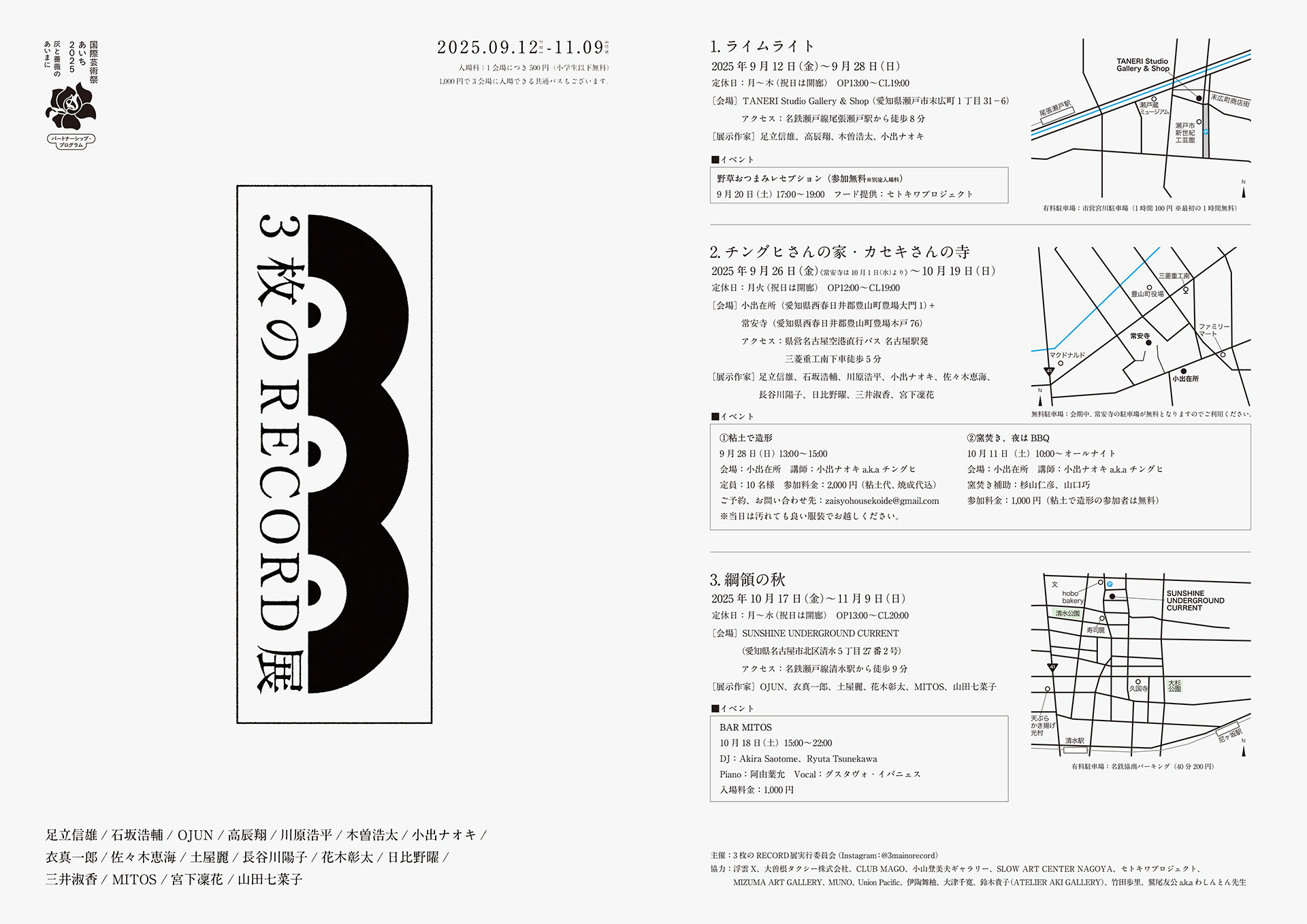 - ①TANERI Studio Gallery & Shop(瀬戸市)