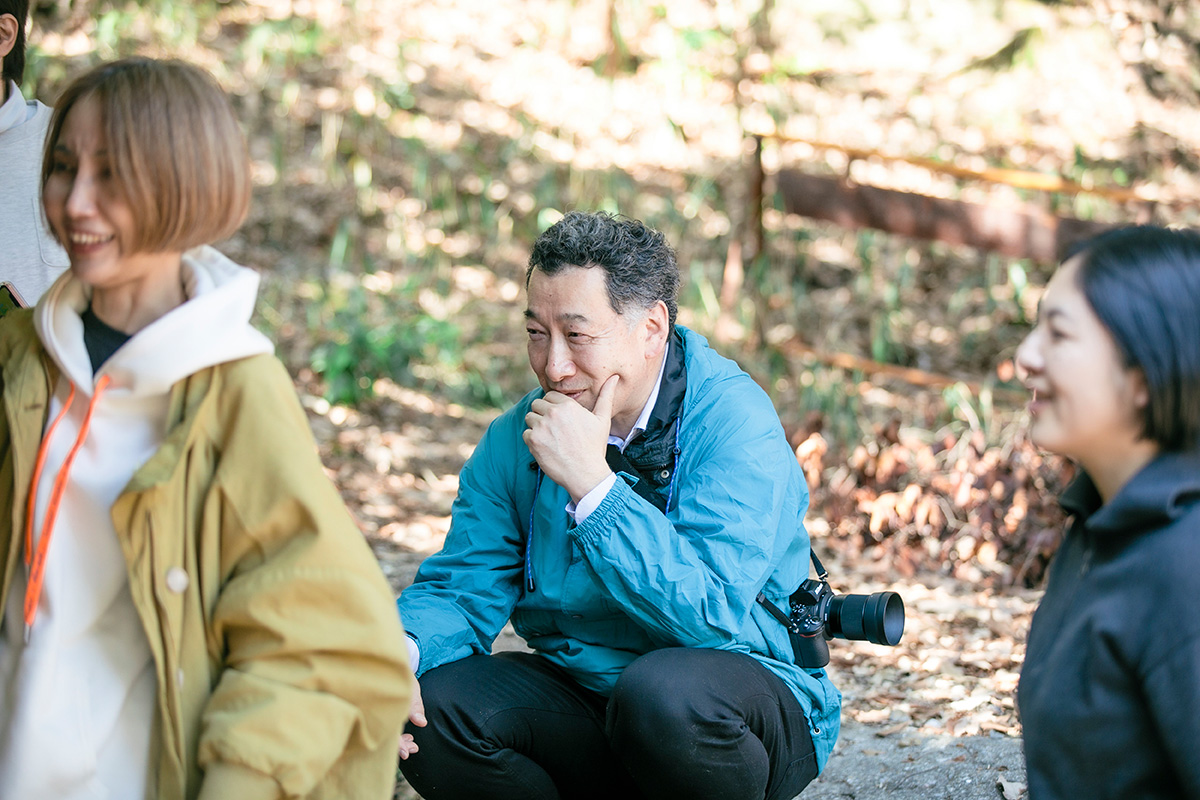 春らしい陽気のなか、改修中の美術館の一角でレクチャーがスタートしました。バンテリンドームナゴヤおよそ6個分の広大な敷地に建つ愛知県陶磁美術館(以下、美術館)は、陶芸館・本館・西館・南館・茶室などの建物を囲むように森が広がる、豊かな自然のなかにあります。名古屋駅からは地下鉄やリニモなどを利用しておよそ1時間弱、近隣には2005年の愛知万博会場であった愛・地球博記念公園や海上の森(かいしょのもり)があります。この場所にどうしてやきもの専門の美術館が誕生したのか。それを考える前に、まずはその「豊かな自然」や「環境」がどういったものなのか、外に出て体感するため"お散歩"に出発しました。