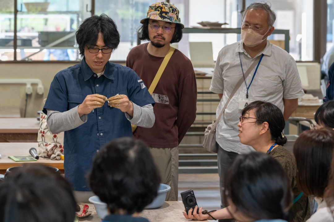 「あいち2025」の参加アーティストである浅野友理子さんも、参加されていました。「あいち2025」に出品する作品のために陶芸館で滞在制作をしているという浅野さんは、制作にあたって瀬戸についてのリサーチを重ねたそうですが、「これまでリサーチをしてわかっていたつもりだったけど、今回の体験をとおして直接的に、瀬戸が自身の中に入ってくる感覚がありました。」と教えてくれました。
