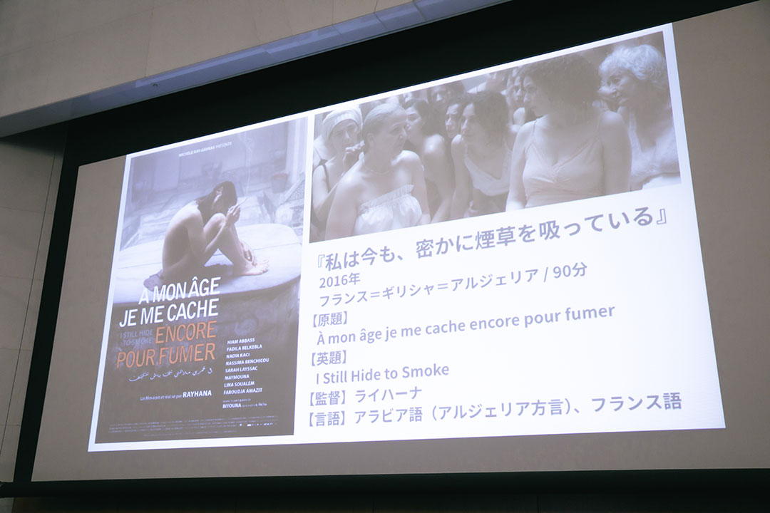 第7回目はラーニングチームメンバーで写真家の黑田菜月の企画で、イスラーム映画祭主宰の藤本高之さんをゲストにお招きし、1995年のアルジェリアを舞台にした映画『私は今も、密かに煙草を吸っている』の上映とレクチャー「映画における当事者性」を行いました。
