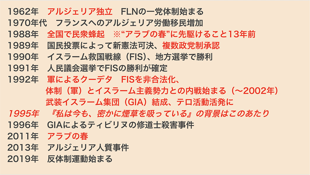 この頃、世界各地で内戦が起きていたが、メディアの注目は主にヨーロッパのボスニア内戦に集中し、アルジェリアの惨状はほとんど報じられなかったという話も、現代の報道のあり方にも重なる。